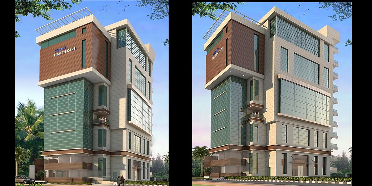The Neo Healthcare promoted a neighborhood level Multispecialty Hospital comprising of 80 beds with advanced diagnostic and secondary level healthcare. The challenge in design was to create a facility with an array of healthcare facilities to be provided on a small parcel of land measuring 1056 sq.m. A fourteen storied building provided for OPD, IPD, ICU’s ,Diagnostics to include CT,MRI ,Ultrasound, ECG,EEG Mamography and Clinical Pathology besides Operating Rooms, Cath Lab, C Arm Endoscopy and a Dialysis facility besides an Emergency. The integration of services demanded intense engagement of all the design teams and the emphasis was to provide pleasing ambience, better environmental quality, infection control and patient safety.