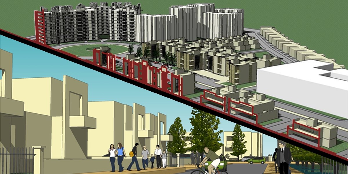 Eldeco progressive real estate enterprise proposed a green field development of a Mixed Use Township on the National Highway on the periphery of Ludhiana towards Jalandhar. The township was proposed on 100 acres of land between Main Railway Line and highway. The development comprised of plotted semi detached housing, Apartment Floor, Multi storey Apartments duly supported by social infrastructure which included a school, 100 bedded Hospital, a Shopping Mall mixing retail with offices, Restaurants and a Road Side Motel. The development was structured around a loop spine designed as a boulevard street and secondary roads branching from the spine. A sustainable township consisting of its own infrastructure was designed with emphasis on orientation of buildings and transition of scale with Multi storey Towers acting as visual foci set within landscape and pedestrian networks.