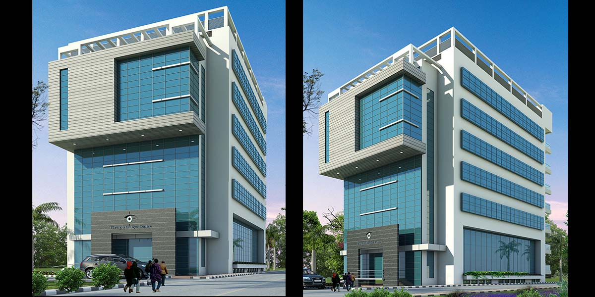 The Tirupati Eye Center was designed as an Super specialty in Opthalmology .The centre is dedicated eye care using latest technologies . The facility consisted of OPD, Refraction Rooms, Retina Center, Operating Rooms and facilities for Lasik Surgery. The facility is equipped to carry out Phaco Emulsion, procedures besides daycare facilities. The Eye center has a dedicated optometrists and optical outlets. The facility is proposed on a 1000sq.m land within a neighborhood in Noida. The building was designed to be a G+3 Storey structure using a modernistic expression using reflective glass, leather finish granite and texture paint on plastered surfaces.