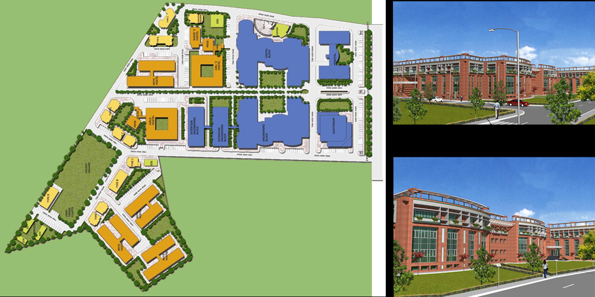 The campus has been redeveloped and restructured in places and has been revitalized by structuring of movement networks and development of open space system addressing the existing built form. New buildings have been added for academic and residential purposes along with sport and recreational facilities as part of the integrated campus.